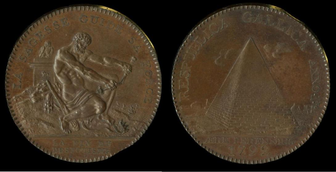 Token coin, 1792, engraved by Augustin Dupré (1748-1833), struck at the Soho Mint, Birmingham, England.