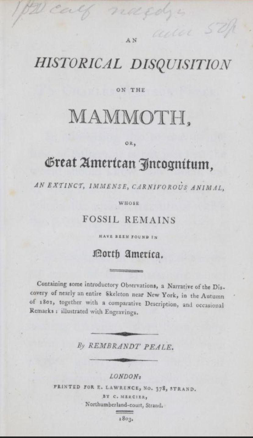 An historical disquisition on the mammoth, or, great American incognitum, an extinct, immense, carnivorous animal, whose fossil remains have been found in North America. Containing some introductory observations, a narrative of the discovery of nearly an entire skeleton near New York, in the Autumn of 1801, together with a comparative description, and occasional remarks: illustrated with engravings