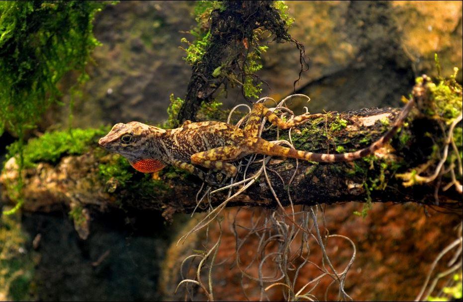 There are no chameleons in Mexico. Peale may have had a lizard in the family Dactyloidae, commonly known as anoles, that are native to warmer parts of the Americas, ranging from southeastern United States to Paraguay. They are sometimes called chameleons because of their color-changing ability. There are about 50 species in Mexico, one of which, the Mexican cave anole (Anolis alvarezdeltoroi), is pictured here.