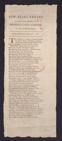 New-Year's verses of those who deliver the Pennsylvania ledger to the subscribers. Philadelphia, January 1, 1778