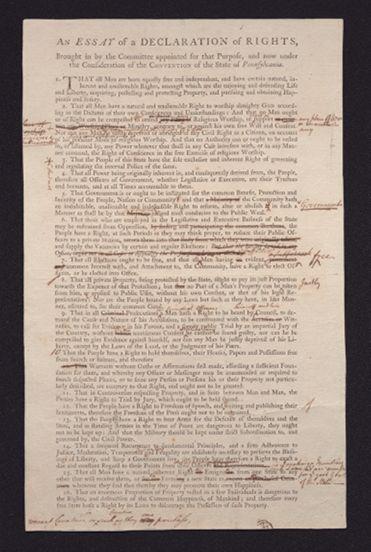 An essay of a declaration of rights: brought in by the committee appointed for that purpose, and now under the consideration of the Convention of the State of Pennsylvania