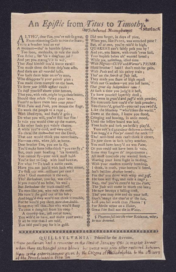 Quillsylvania [i.e., Philadelphia], [1781]