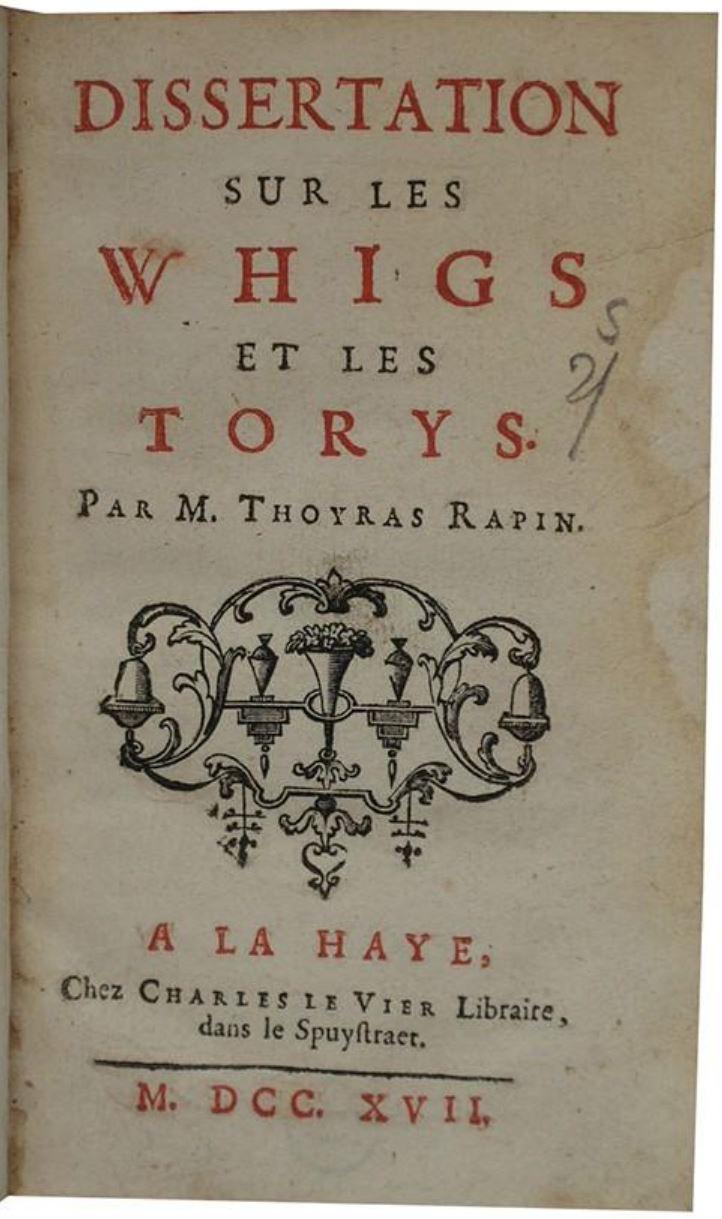 Dissertation sur les Whigs et les Torys. /Par M. Thoyras Rapin