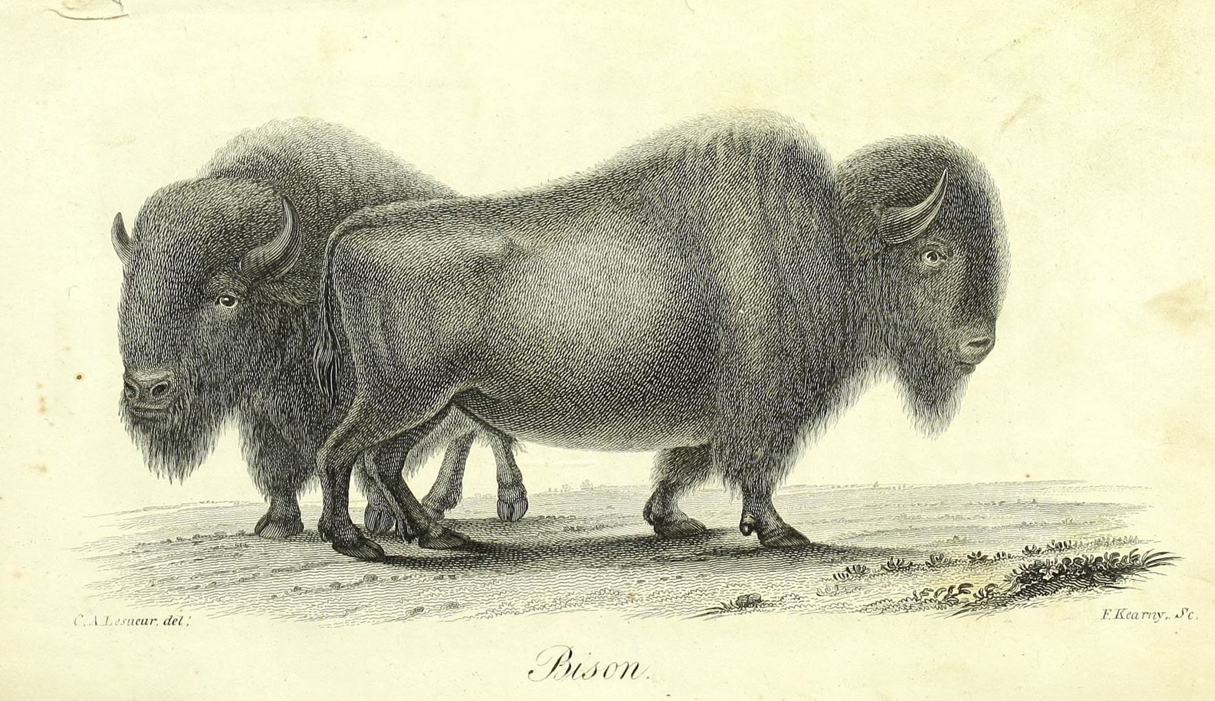 John Godman's American Natural History. Part I. Mastology, 3 vols. (Philadelphia, 1826-1828), 3: 4-28 has a long description of the bison, likely based on the specimen in the Museum. The image is the plate following p. 4.
