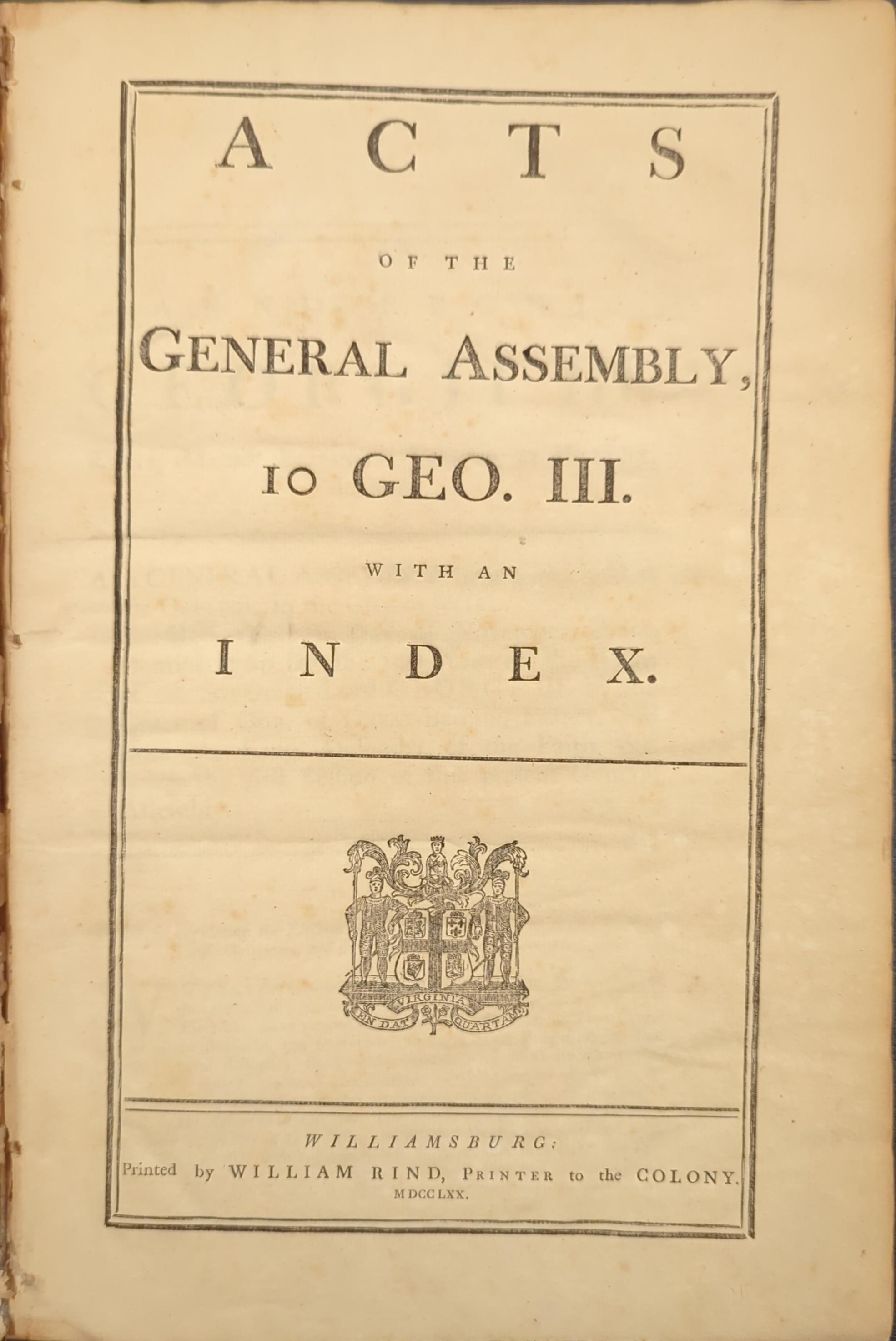 The acts of Assembly, now in force, in the colony of Virginia