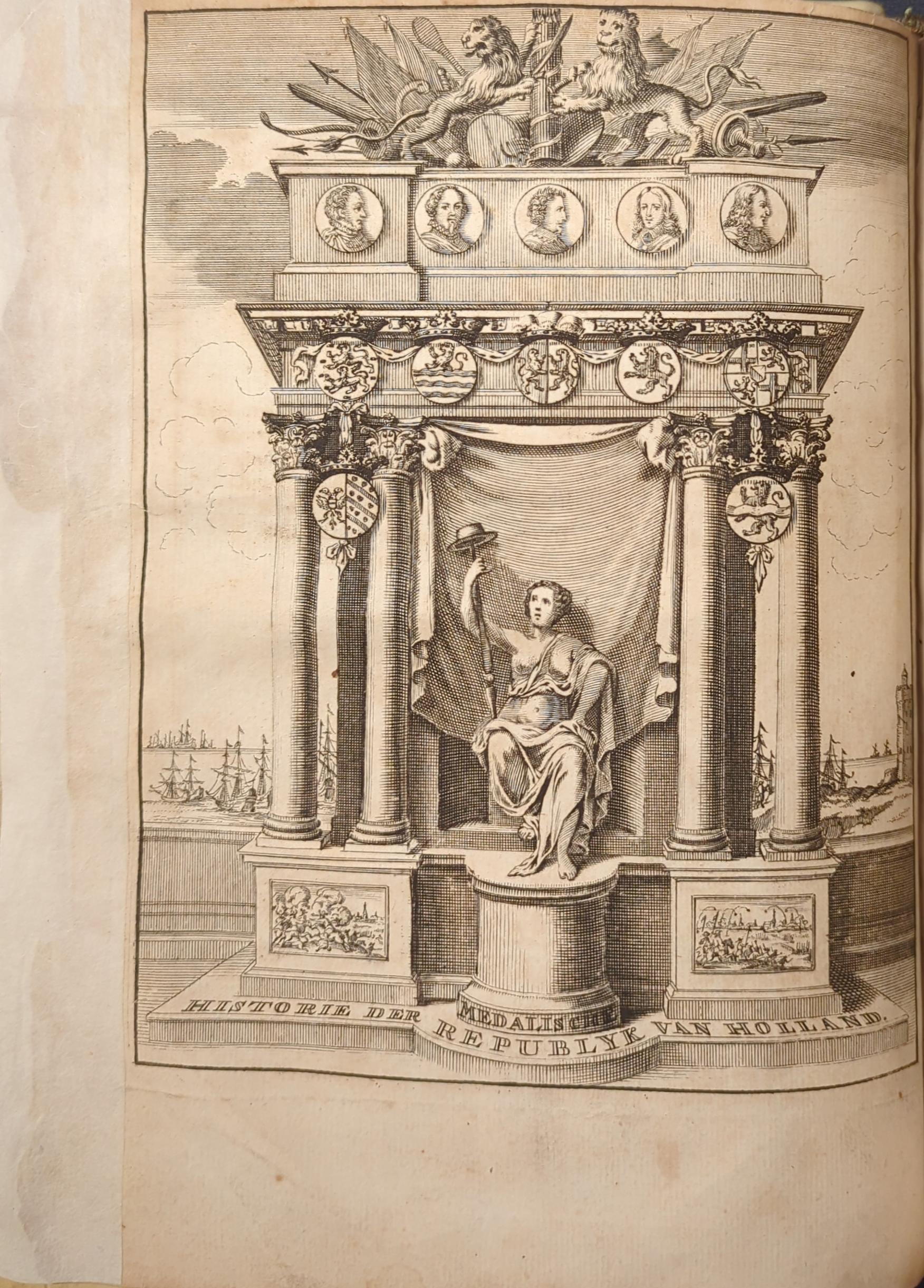 Medalische historie der Republyk van Holland /in 't Fransch beschreeven door den Heer Bizot, en uit die taal in 't Nederduitsch gebracht, en wel twee derden vermeerderd ; nevens alle de medalien der overtocht van Zyn Hoogheid na Engeland, des zelfs krooning, enz. tot nu toe in gevoegsaame ordre gesteld ; met een byvoegsel van de grafsteden ter eere der dappere helden opgerecht
