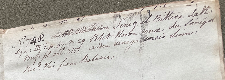 Charles Willson Peale (1741-1827) wrote, in his 25th Lecture (ca. 1799): "No. 748. Little Heron. Senegal Bittern Lath. Syn. III. i. p. 67. n. 29. Petit Heron roux, du Sénégal. Buff. pl. enl. 315. Ardea senegalensis Linn. Recd. this from Batavia [= Java, Indonesia]." (Academy of Natural Sciences of Drexel University Archives, coll. 40)