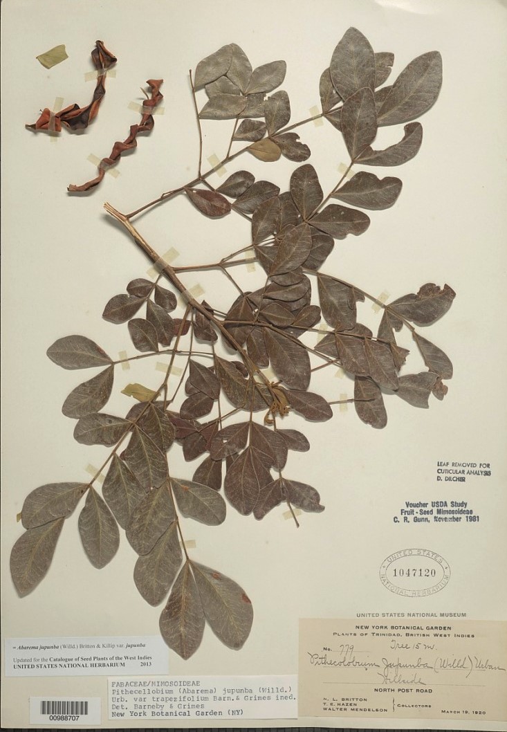 This species may have been Abarema jupunba, which was known as dalmarie in the Lesser Antilles. Catalogue of the Seed Plants of the West Indies, Department of Botany, National Museum of Natural History, Smithsonian Institution / https://naturalhistory2.si.edu/botany/WestIndies/catalog.htm