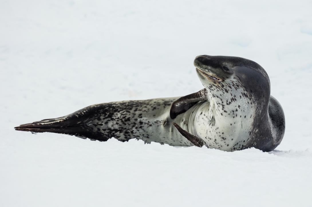 The leopard seal (Hydrurga leptonyx), also referred to as the sea leopard,is the second largest species of seal in the Antarctic (after the southern elephant seal). Its only natural predator is the killer whale.