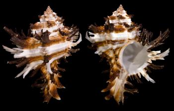 Deux coquillages univalves du genre des murex que l'on chevaux de frise