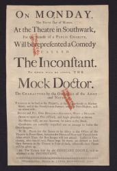Southwark Theatre (Philadelphia) playbill for "The Inconstant" and "The Mock Doctor," 1778 (2)