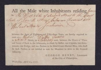 Notice of an election of Philadelphia militia officers, 1777