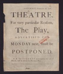 Southwark Theatre (Philadelphia) playbill for "The Constant Couple" and "The Mock Doctor," 1778