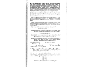 Library Company of Philadelphia's message calling for a meeting to consider the question of a new building, 1771