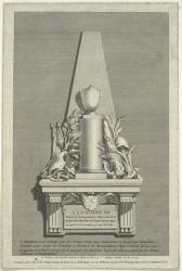 An engraved print representing the marble monument invented and executed at Paris in 1777 for General Montgomery engraved by Augustin de St. Aubin
