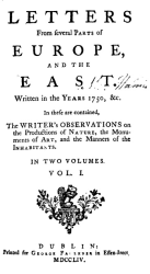 Letters from several parts of Europe and the East, written in the Years 1750. 2 Vols. Octavo