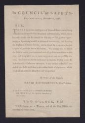 Order of the Pennsyvania Council of Safety to Pennsylvania militia officers to march to Philadelphia, 1776
