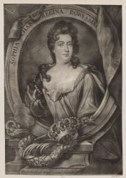 A large oval Print la vengeance de Latone after Jouvenet engraved by Daule 1762