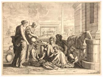 Trans.: A print after Poussin of the Holy Family in Egypt