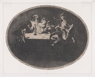 An oval engravg. After Callot Soldiers playing at cards