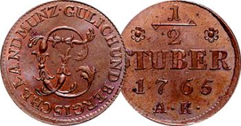 A copper coin of Julich & Bergs 1/2 Stuber 1765