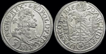 A 1/8 of a rixdollar of Leopole, his bust. & reverse the imperial a spread eagle, 1670.