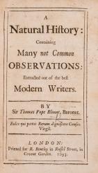 Thomas Pope Blount, Sir (1649-1697), A natural history (London: R. Bentley, 1693)