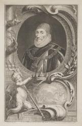 Trans.: A portrait print of Chrles Howard, Earl of Nottingham, engraved by Vertue