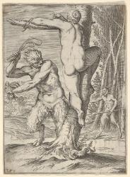 Trans.: A print by Annabale Carracci of nymphs and satyrs