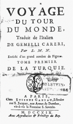 Voyage de Gemelli autour du monde 6 vol. fig[ures] Paris 1719 8o.