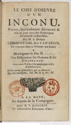 Saint-Hyacinthe, Thémiseul de (1684-1746), Le Chef d'oeuvre d'un inconnu, poème heureusement découvert et mis au jour avec des remarques (La Haye: La Compagnie, 1714)