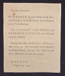 Broadside regarding liberty of the press and freedom of speech, 1779
