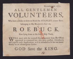 British proclamation advertising for volunteers for the Royal Navy, 1777