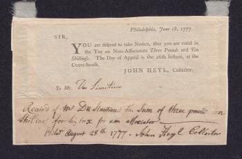 Notice of a tax on Philadelphia non-associators, 1777