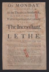 Southwark Theatre (Philadelphia) playbill for "The Inconstant" and "Lethe," 1778