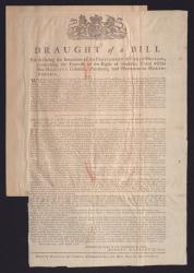 Draft of a British bill declaring that Parliament will no longer impose taxes on North America, as doing so has brought about "great uneasiness and disorders," 1779
